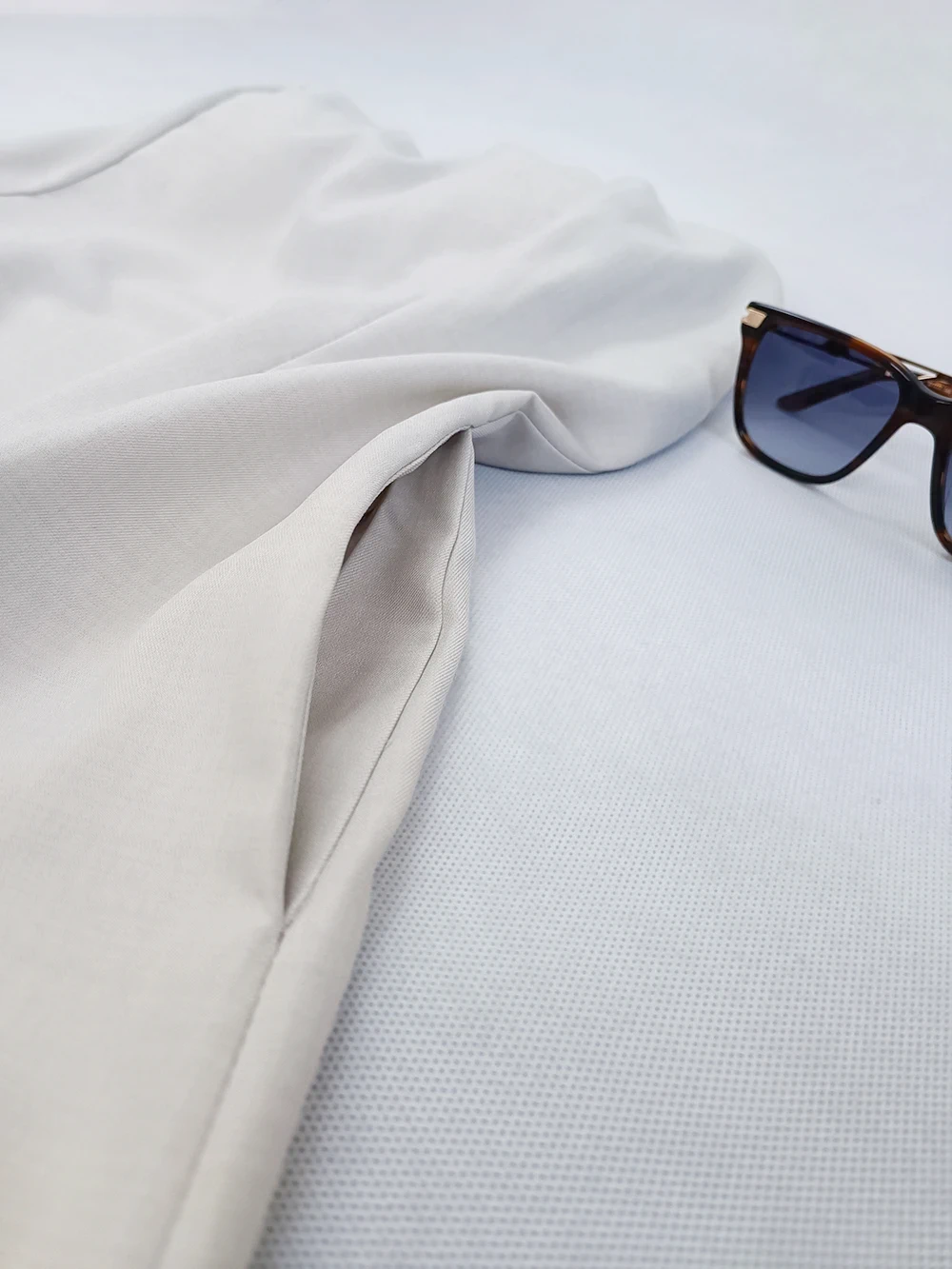 پیراهن دارای نوار استپ روی سینه و دو جیب در بغل ( مطابق تصویر ) می باشد.